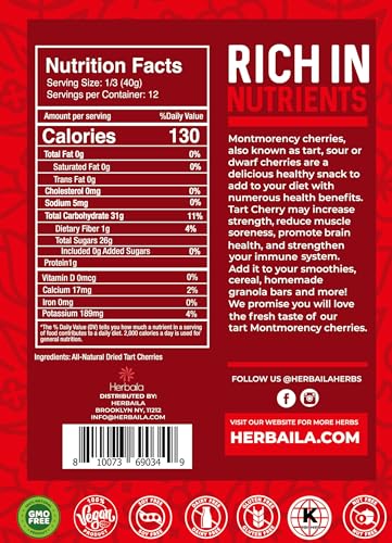 Dried Montmorency tart cherries are massive, plump, and juicy. These cherries have been naturally dried to retain the bitter tartness of recent cherries with none added sugar. Benefit from the tart taste and scrumptious style of those unsweetened, entire dried, all pure, non-GMO Montmorency dried cherries.