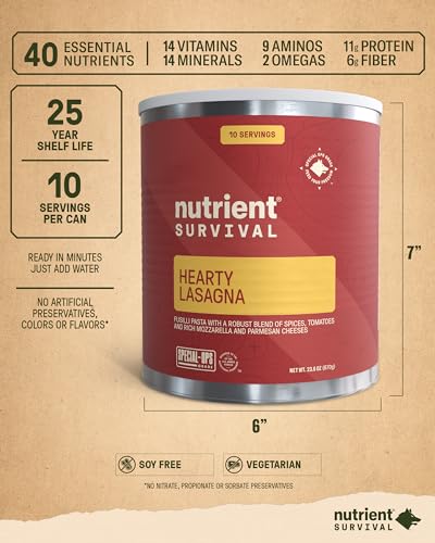 Be the first to review “Nutrient Survival MRE Hearty Lasagna, Ready to Eat Meals (10 Servings) Freeze Dried Prepper Supplies & Emergency Food Supply, 40 Essential Nutritients, Shelf Stable Up to 25 Years, One Can”