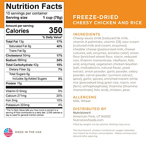 Be the first to review “Nutristore Freeze-Dried Cheesy Chicken and Rice | Emergency Survival Bulk Food Storage Meal | Perfect for Everyday Quick Meals and Long-Term Storage | 25 Year Shelf Life | USDA Inspected (1-Pack)”