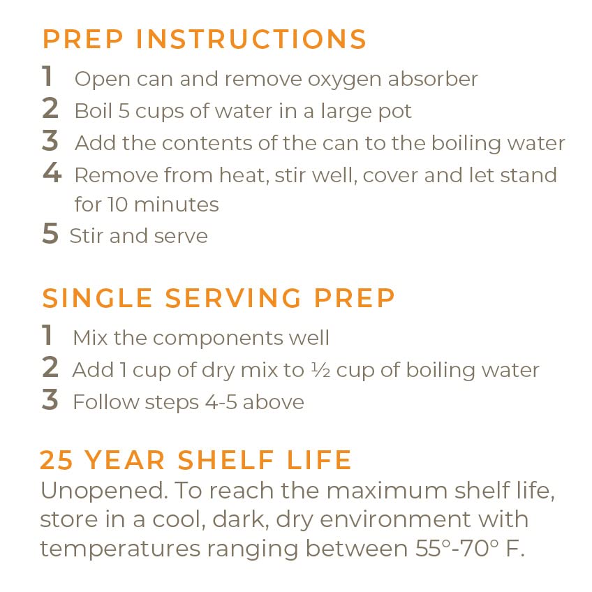 Simple Prep — Comply with the easy preparation directions to create an prompt meal, for these on a regular basis emergencies, catastrophe conditions, or retailer for long-term preparedness. Merely add water and luxuriate in in 10 minutes.
