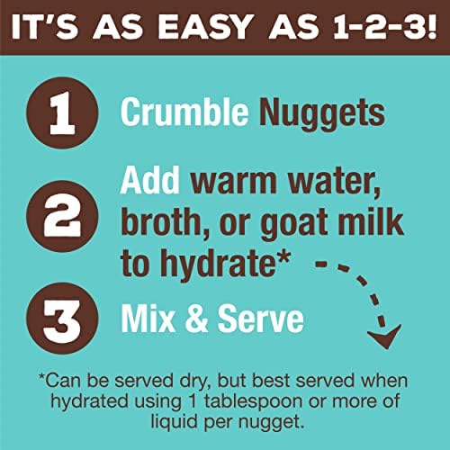 Handy and scrumptious uncooked vitamin that’s shelf-stable and able to serve. Merely crumble the freeze-dried nuggets and rehydrate with water, Bone Broth, or Uncooked Goat Milk.