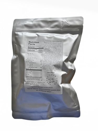 *MADE IN THE USA**Freeze-Dried 25-year shelflife –COOKED– Pulled Skinless Rooster Breast. 6oz of freeze-dried rooster produces 1.8lbs simply add water. May be consumed immediately or use it in recipes. So as to add somewhat taste, you’ll be able to rehydrate in heated broth. Or, for instance, for those who’re rehydrating cooked pulled rooster, it could possibly go proper into your pot of tomato sauce, permitting it to soak up the tomato sauce at it warms. It is going to burst with taste! You can too heat the meat within the microwave, a sluggish cooker, over the flame, on the stovetop or within the oven. There are such a lot of methods to rehydrate in no matter means works finest for you. 1 oz of freeze-dried rooster will produce on common, 5 oz of hydrated meat. Place product in a cool dry place away from daylight. You may be assured that will probably be good to eat for a MIN of 10 years and MAX of 25 years. The Freeze-drying course of requires allot of power. Our energy is generated utilizing photo voltaic. Thus, lowering our carbon footprint considerably. DO YOU USE CHEMICALS TO PRESERVE? Nope! I take advantage of ZERO chemical preservatives or components in our rooster. DO YOU SOURCE YOUR CHICKEN OUTSIDE THE U.S.A? Nope, I supply rooster from native suppliers within the USA the place it’s inspected by the united statesD.A. I purchase in small batches to instantly prepare dinner and freeze dry inside a number of days. DO YOU USE THE INDUSTRY STANDARD 5MIL PACKAGING? Nope once more, I take advantage of 7 MIL and spherical nook packaging as most well-liked by preppers and backpackers on the market! Very strong and lightweight weight.