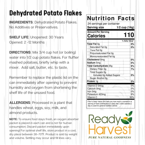 Be the first to review “Ready Harvest Dehydrated Food Potato Flakes for instant mashed potatoes | Camper must haves camping essentials | Hurricane Preparedness Items, Survival Food, 10 Can | 30 Year Shelf Life”
