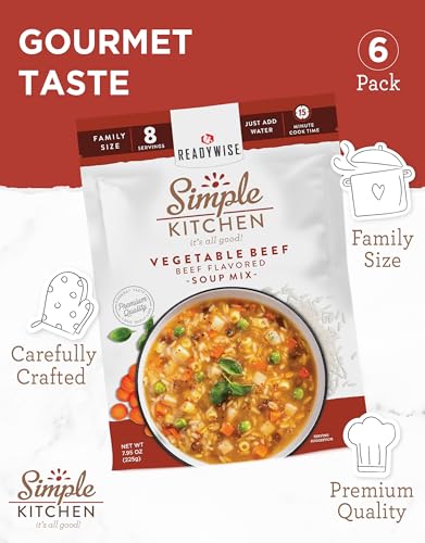 Be the first to review “READYWISE – Simple Kitchen, Vegetable Beef Flavored – Soup Mix, 8 Servings, Pack of 6, Family Size, MRE, Freeze Dried Food, Ready To Eat Meals, Hiking & Backpacking Food, Soup for Family”
